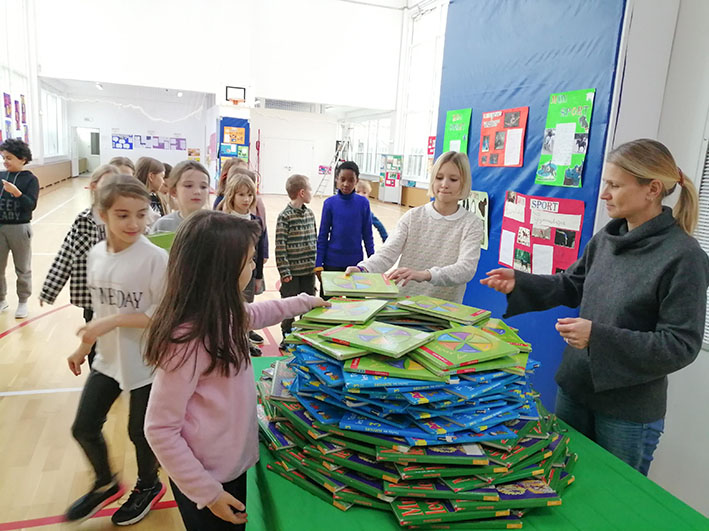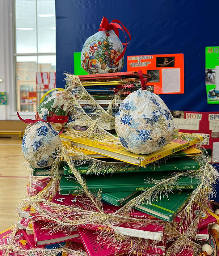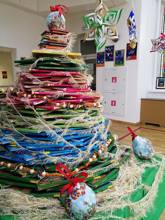 Под руководством Елены, документалиста BCD, ребята сконструировали «ёлку» из старых учебников.