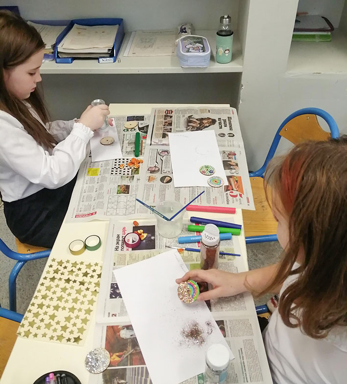 А вместе с преподавателями иностранных языков учащиеся сделали украшения из папье-маше.