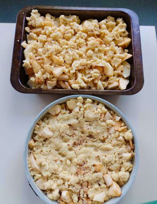 Затем мы посыпали яблоки тестом.