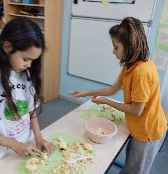 Одна группа резала яблоки на кусочки:
