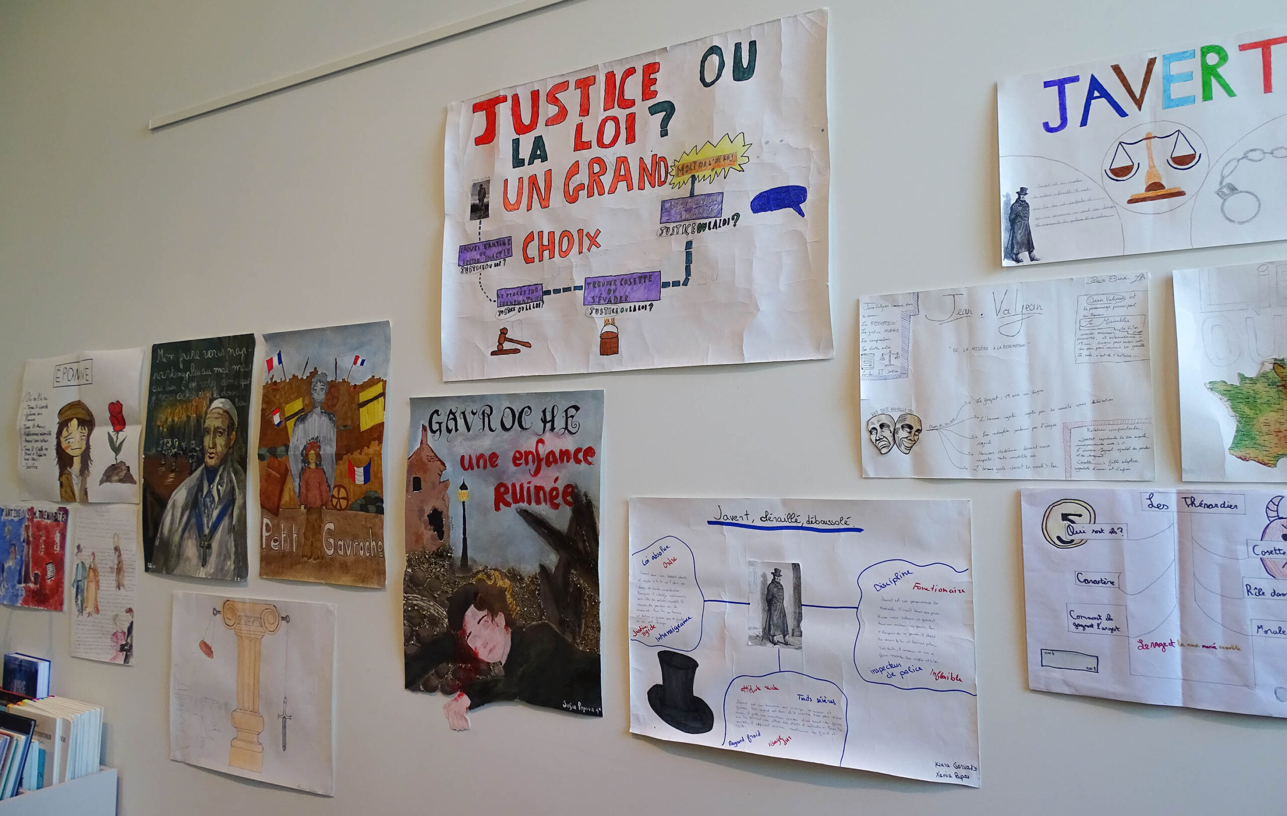 Ученики 4-го класса А приглашают вас в библиотеку CDI на выставку плакатов по произведению «Отверженные». Эти плакаты были созданы после прочтения романа с целью графически передать своё видение книги.