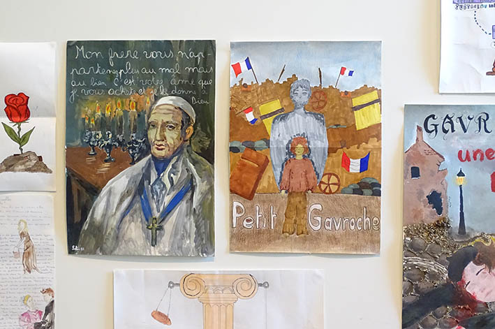 Ученики 4-го класса А приглашают вас в библиотеку CDI на выставку плакатов по произведению «Отверженные». Эти плакаты были созданы после прочтения романа с целью графически передать своё видение книги.