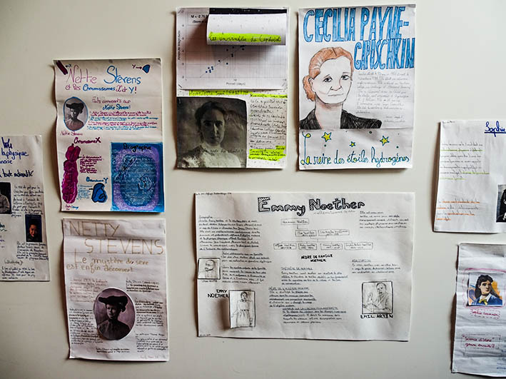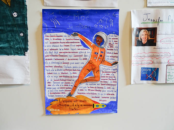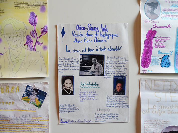 Ученики 5-х классов представляют свои плакаты «Женщины в науке» в библиотеке CDI в течение всей этой недели.