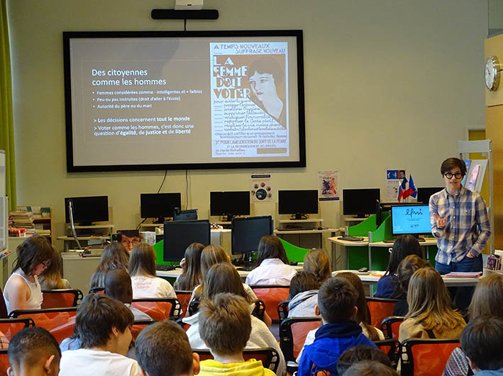 В рамках Недели равенства во вторник состоялась встреча для учащихся CM2 и 6e, в которой приняли участие около 50 человек. Мероприятие было посвящено истории Международного женского дня и, в частности, борьбе женщин за избирательные права.