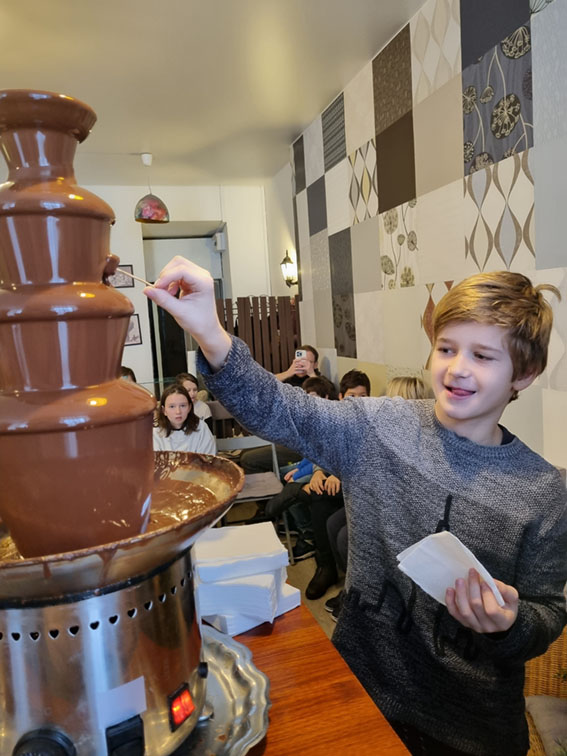 В мастерской «Сыр и шоколад» нам рассказывали историю создания шоколада и дали попробовать несколько разных сортов. Это было очень вкусно! Мне очень понравилась наша поездка, потому что она была интересной, познавательной и  весёлой.