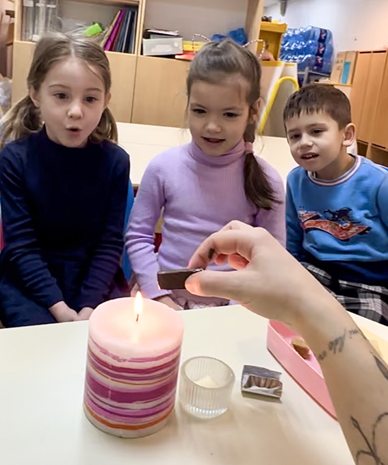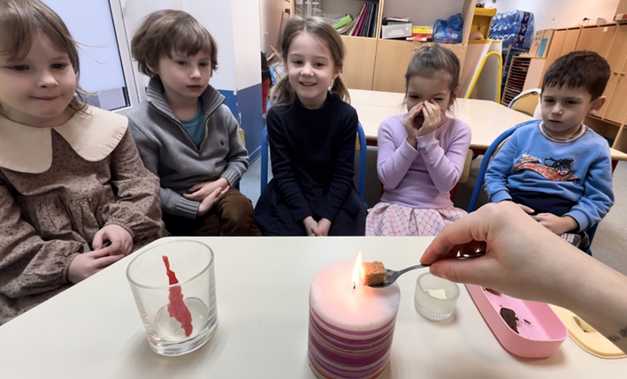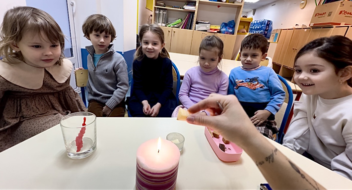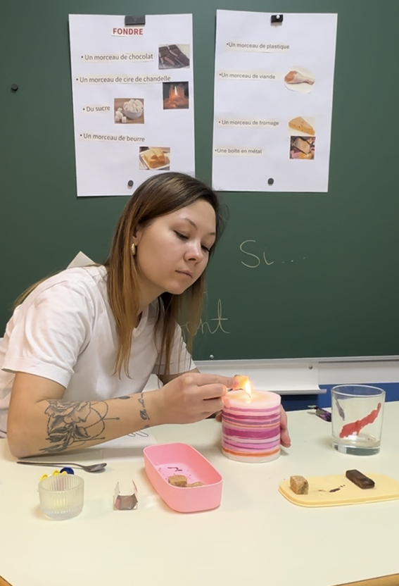 Поэтому на прошлой неделе две группы FLSco школы IDF наблюдали настоящие опыты со свечами, чтобы выучить новое слово — « fondre » (плавиться, таять). Опыт, конечно, проводился самим учителем.
