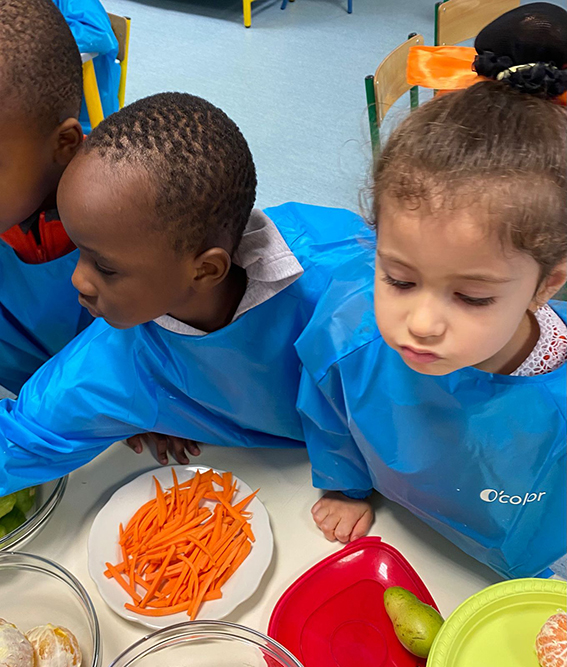 - Des ateliers de cuisine à visées artistiques et gustatives en MS/GS ;