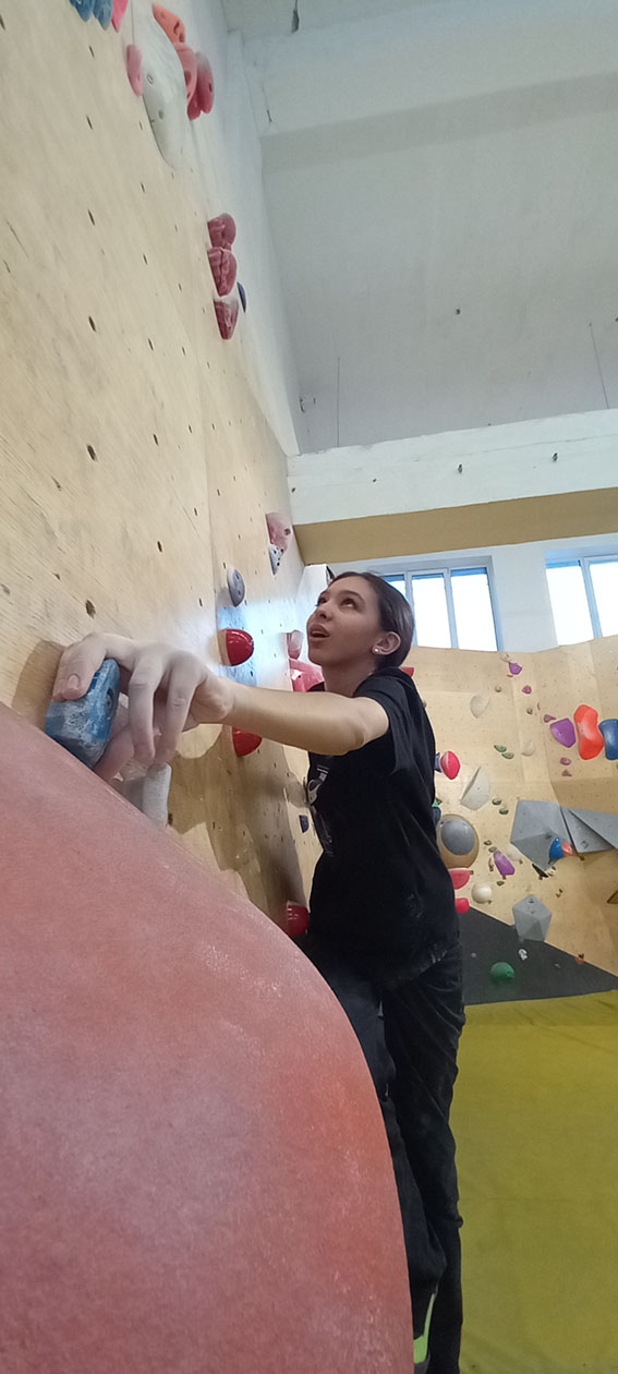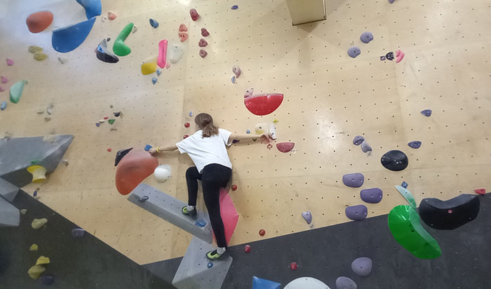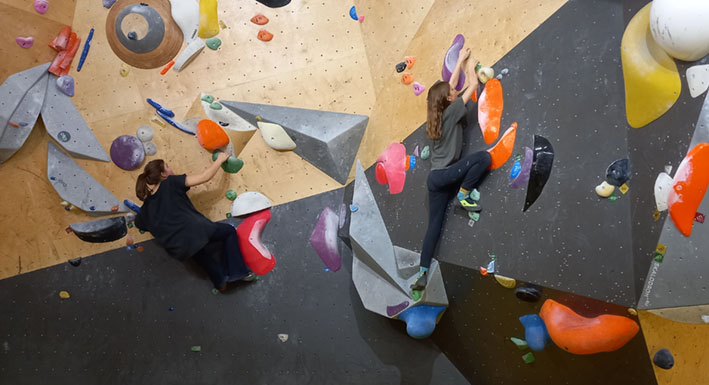 Au milieu d'un mur de prises colorées, ils relevèrent les défis proposés pour réussir différents blocs. Un bloc est un ensemble de prises d’une même couleur, qui constitue l’itinéraire à gravir, la cime à conquérir. Grimper un bloc, c’est exécuter une séquence courte mais très intense de mouvements, qui nécessitent souplesse, puissance, force et dynamisme. Un sport exigeant et enrichissant où l'ensemble du corps et de l'esprit sont mis en jeu.