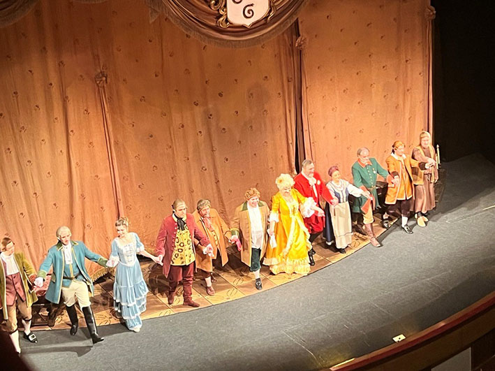 La rencontre après le spectacle avec le comédien Aleksei KONOVALOV qui interprétait le rôle de Mitrofanouchka, a été une surprise agréable pour les élèves. Ils en ont profité pour lui poser des questions sur son métier, sur les costumes historiques et, bien sûr, pour prendre des photos.