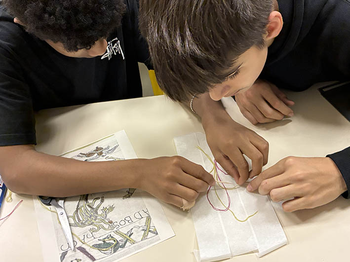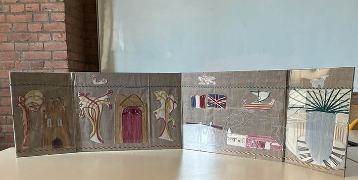 Les élèves du parcours anglophone présentent leur recherche et leur interprétation contemporaine de la Tapisserie de Bayeux. Ils ont étudié les évènements de l’histoire commune de la France et de l’Angleterre qui ont inspiré la Tapisserie. Ensuite ils se sont intéressés à la polémique actuelle autour du prêt historique au British Museum de cette œuvre patrimoniale qui a presque 1000 ans, discutant de l’importance de la coopération culturelle entre les deux pays et de la conservation du patrimoine mondial.