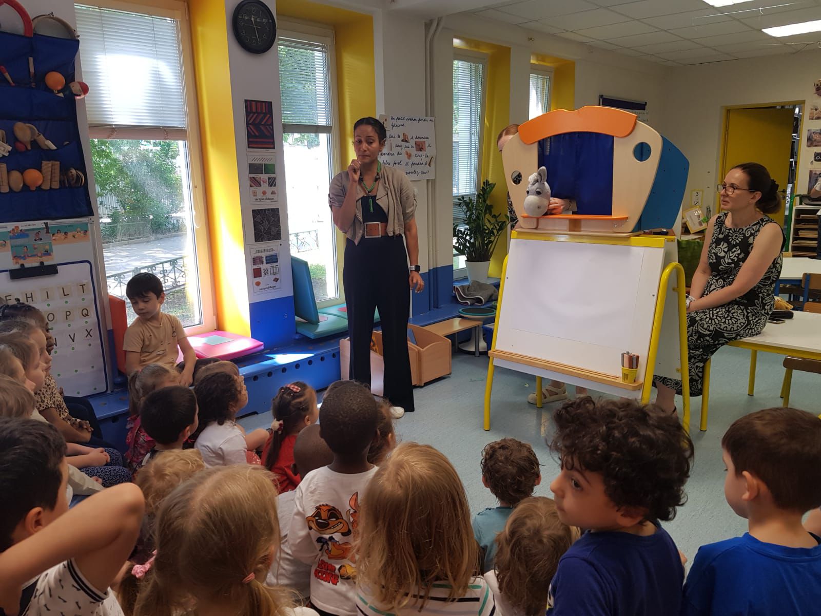 Nos élèves de maternelle ont eu la joie de participer à une séance originale et pleine de vie : un théâtre de marionnettes multilingue, imaginé pour éveiller leur curiosité linguistique et culturelle.