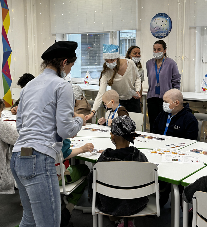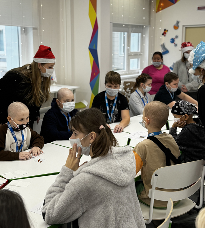 Le 5 décembre, les élèves de la Maison des Lycéens (MDL) ont eu l’honneur de passer un moment riche en émotions auprès des enfants de 8 à 12 ans hospitalisés à l’hôpital Blokhina. Cette initiative, organisée avec l’aide précieuse de Mme Jeanine Sich, fondatrice de l’association caritative Zhiva, avait pour but d’apporter un moment de joie à ces jeunes patients atteints de cancer.