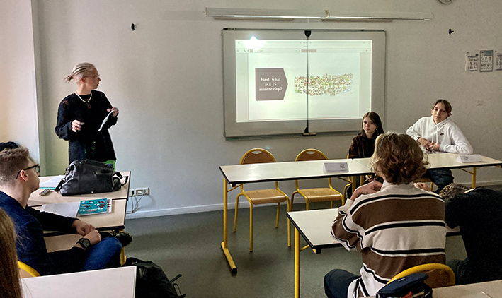 The task was to prepare a presentation about the idea of a 15-minute city in groups of 3 or 4 and then we had to think if the area where we live can be a 15-minute neighbourhood and illustrate to convince other classmates. The conference brought out several points of view and created disagreements, that were enthusiastically discussed during the process.