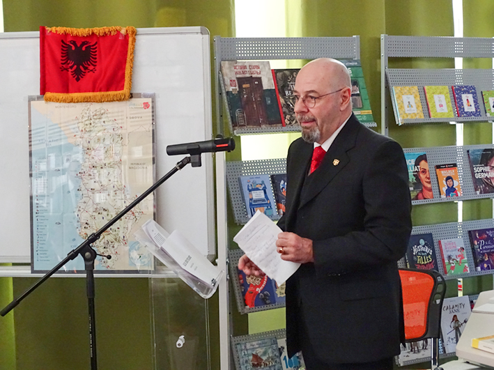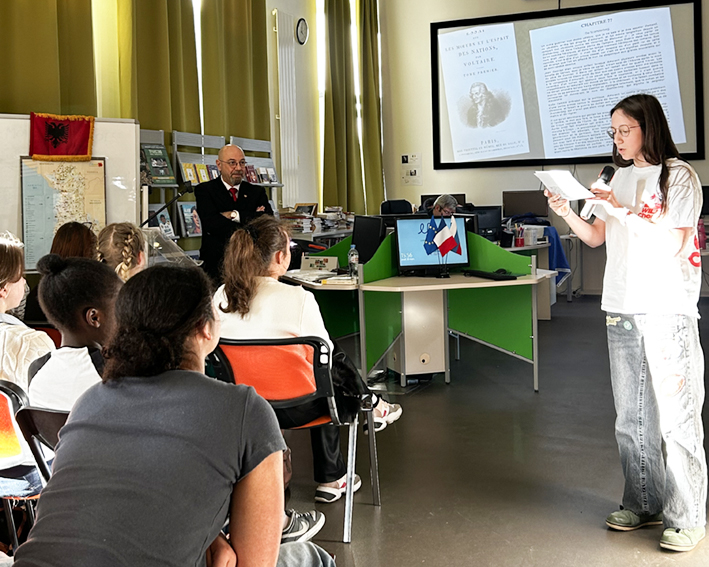 L’Albanie fait partie des États membres de l’OIF depuis 1999 et ce fut donc l’occasion pour ce passionné de langue française de présenter l’histoire et les richesses de son pays. Une histoire citée déjà chez Ronsard et Voltaire ! dont certains élèves ont lu des extraits.