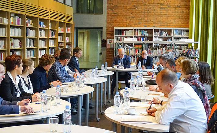 Pendant la rencontre avec les représentants des personnels, des parents et des élèves membres du Conseil d’établissement M. l’Ambassadeur a parlé du présent et de l’avenir du lycée. Il a répondu aux questions des élèves concernant les visas d’études et a promis aux parents délégués d’étudier une possibilité d’organiser une fête pour les élèves du lycée au sein de l’Ambassade.