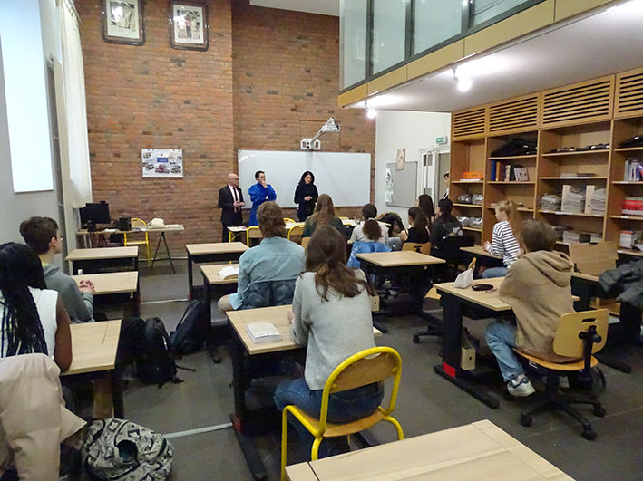 Mme Arnoldy-Sich a présenté la fondation, a parlé des projets actuels et à venir et a répondu aux questions des élèves.