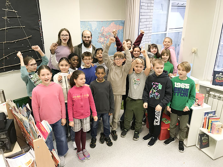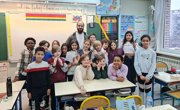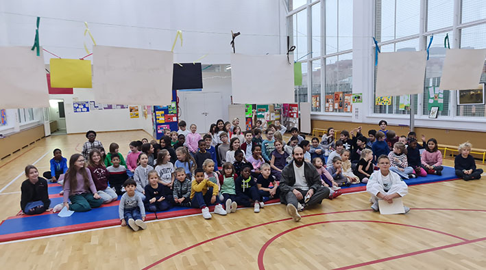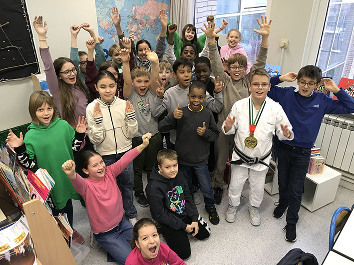 Pour donner suite à notre exposition au Musée des Sport de l’IDF et toujours dans le cadre de la Semaine des lycées français du monde, nous avons accueilli deux grands champions : Yaroslav vice-champion d’Europe de pentathlon et Fedor, 11 ans, champion du monde de ju-jitsu.