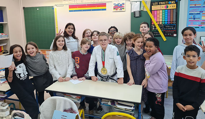 Après un peu de questions-réponses avec nos deux invités, les élèves ont pu admirer leurs nombreuses médailles, discuter avec eux, récupérer quelques autographes et même leur serrer la main.