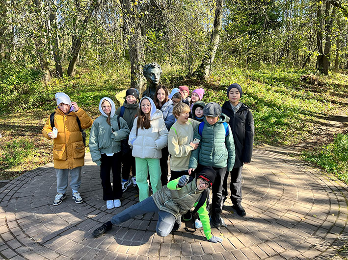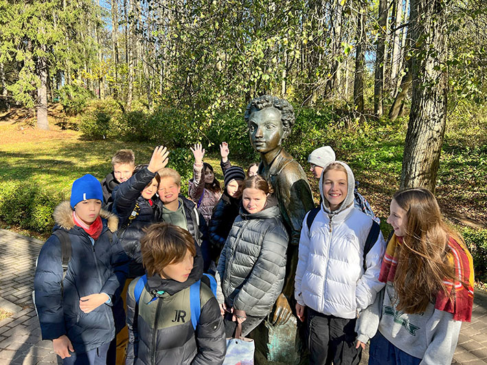 Le 11 octobre 2023, nous sommes allés à Zakharovo, à la datcha de la grand-mère de Pouchkine. Là-bas, nous avons vu la maison où, pendant son enfance, en été, vivait le poète. Cette maison a été rénovée en musée.