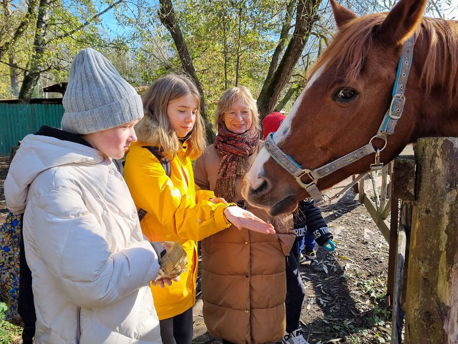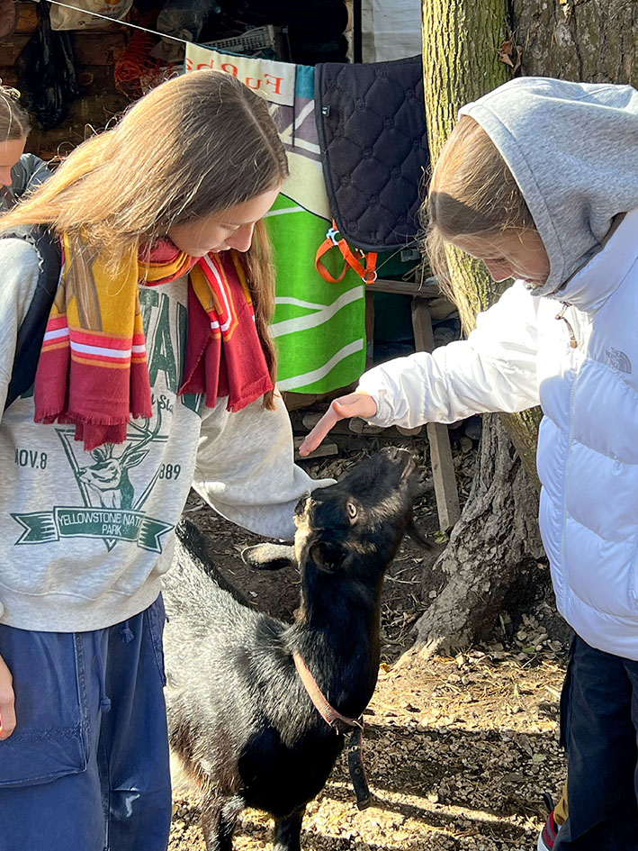 Nous avons également vu une ferme dans laquelle il y avait des chevaux, nous avons caressé des chèvres et des chats.